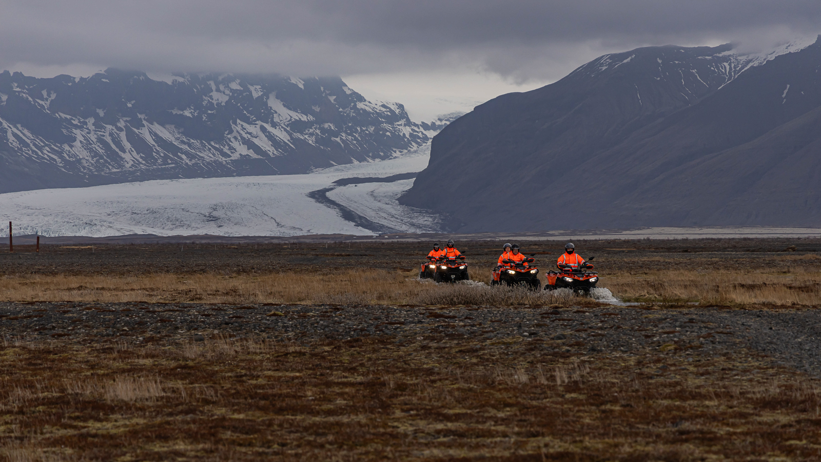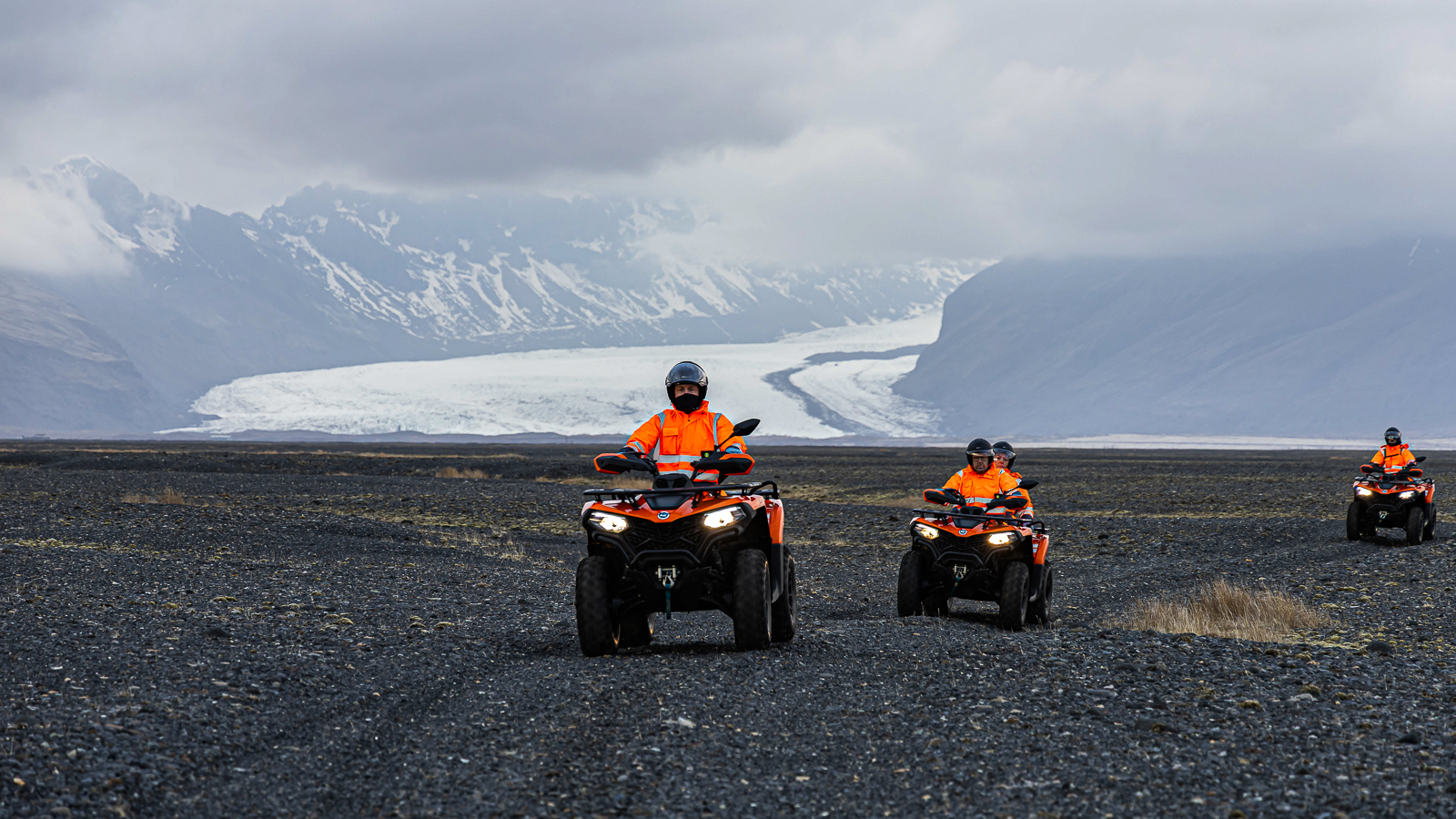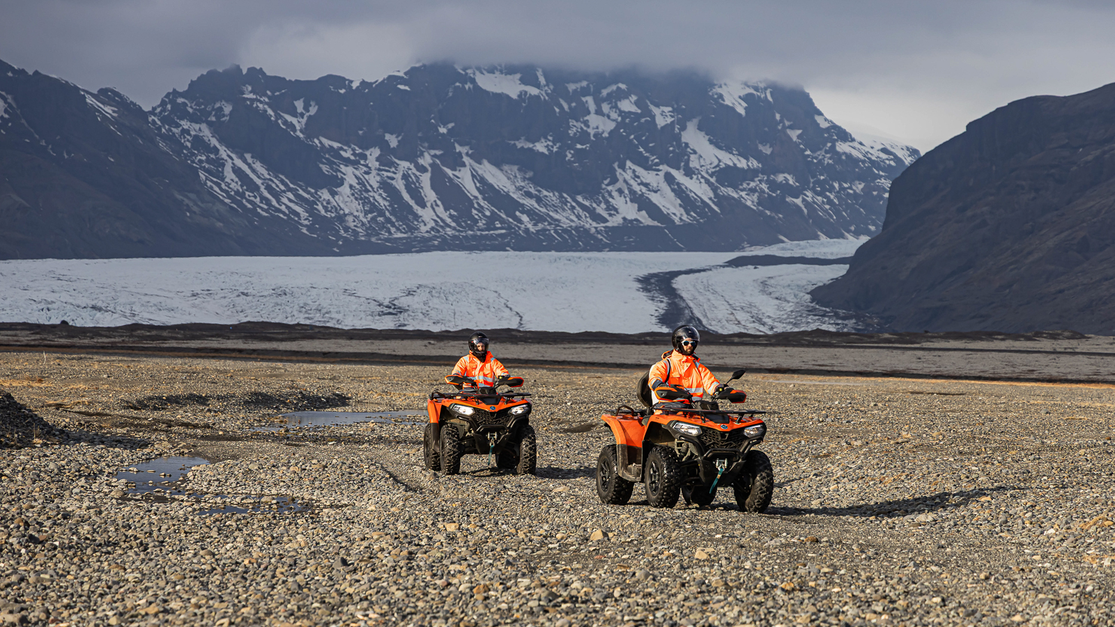 Embark on an exhilarating two-hour ATV tour in the Skaftafell area, where adventure meets stunning natural beauty. Your journey begins as you set off, driving down the winding river beds that weave through the magnificent landscape, surrounded by Iceland’s dramatic scenery.